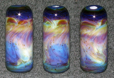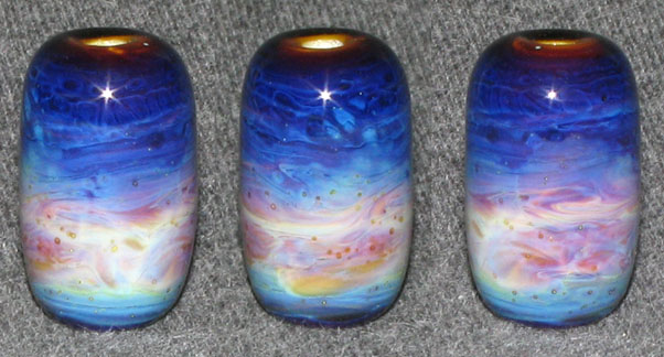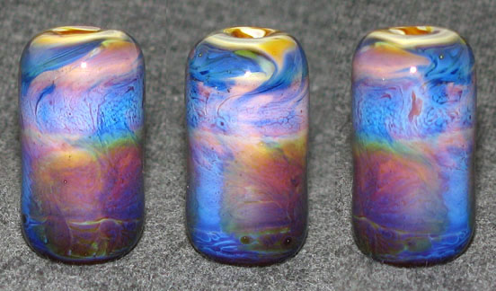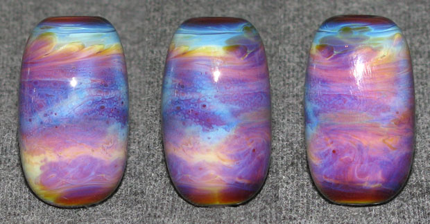The first three beads in the sample photos were made with 1021FP alone. The color variations are due solely to how the glass was worked.